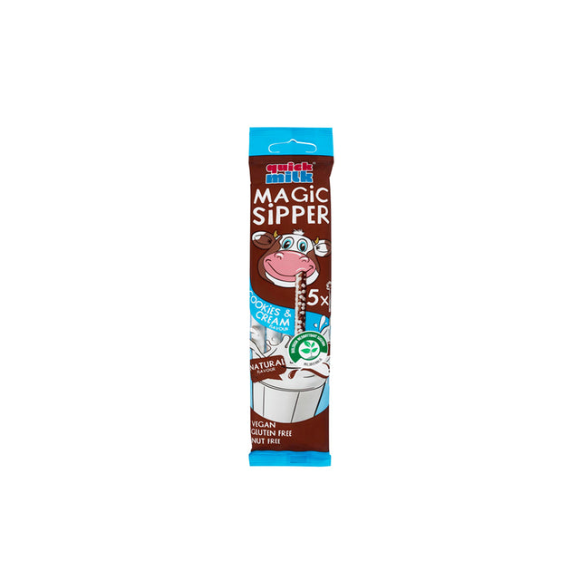 Dá um sabor irresistível ao teu leite com as Quick Milk Palhinha Cookies & Cream! Cada embalagem contém 5 palhinhas que transformam o leite num delicioso momento de sabor a cookies & cream, sem derreter, bebendo-se diretamente através da palhinha.