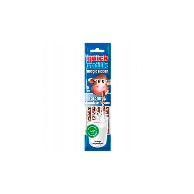 Transforma o teu leite num delicioso chocolate com côco com as Quick Milk Palhinha! Cada embalagem contém 5 palhinhas que, ao beber o leite através delas, conferem um sabor irresistível a chocolate e côco.